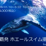 2025年9月29日 / 最終更新日 : 2025年10月11日 JunShimizu 撮影ツアー ホエールスイム撮影 感動と興奮の出会いを水中写真に 沖縄本島冬季BIGイベント「ホエールスイム撮影ツアー」2026年開催致します。2025/10/01より募集を開始します。土日、連休の日程は比較的早くに満席になります。お早めにお申し込みお願 […]