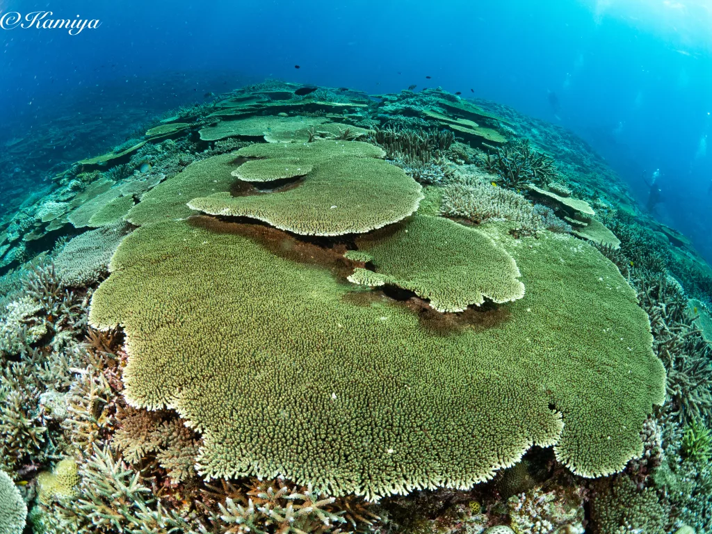 でっかい生き生きしたナンヨウキサンゴと魚達が綺麗でした。