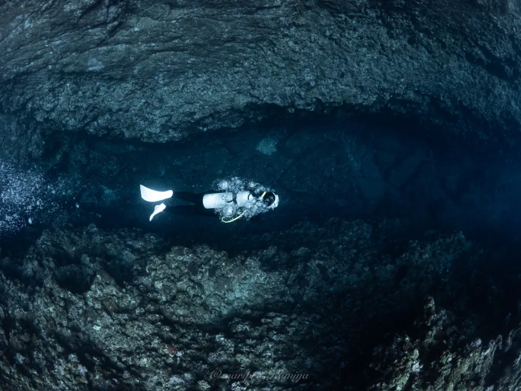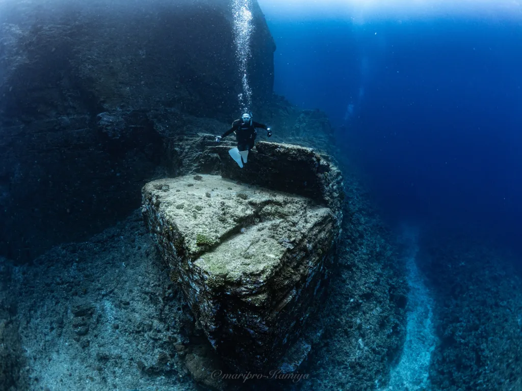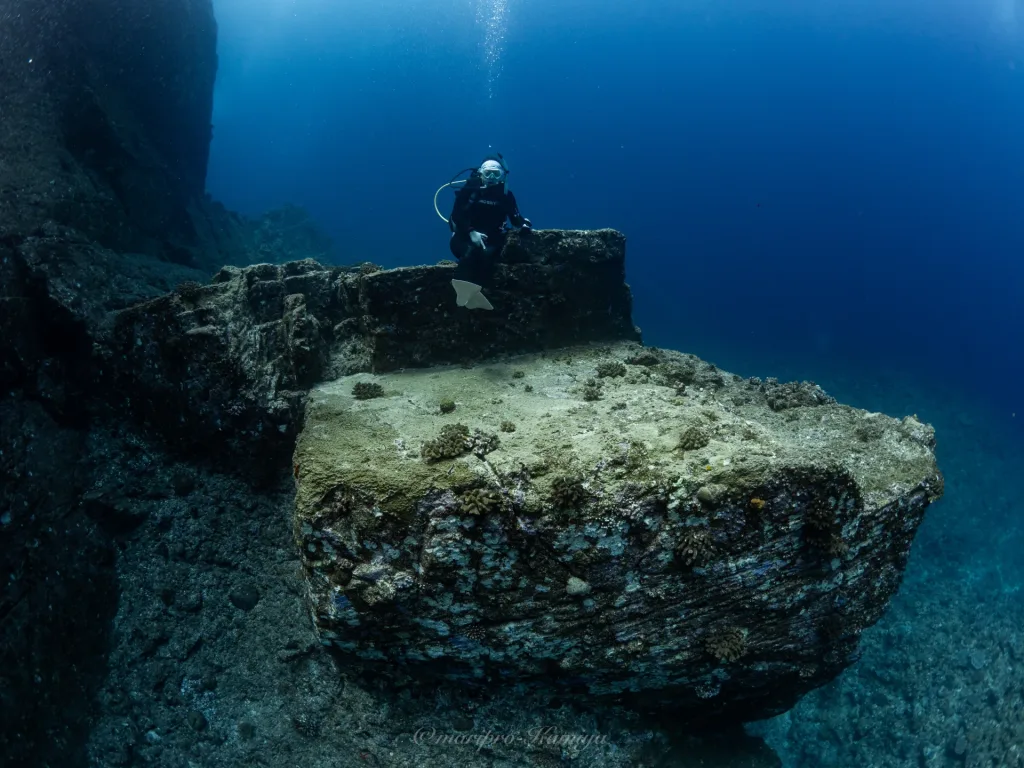 自然に角ばって出来た海底遺跡の様な所で、角に座ってロダン作の考える人みたいな事したりしました🧐