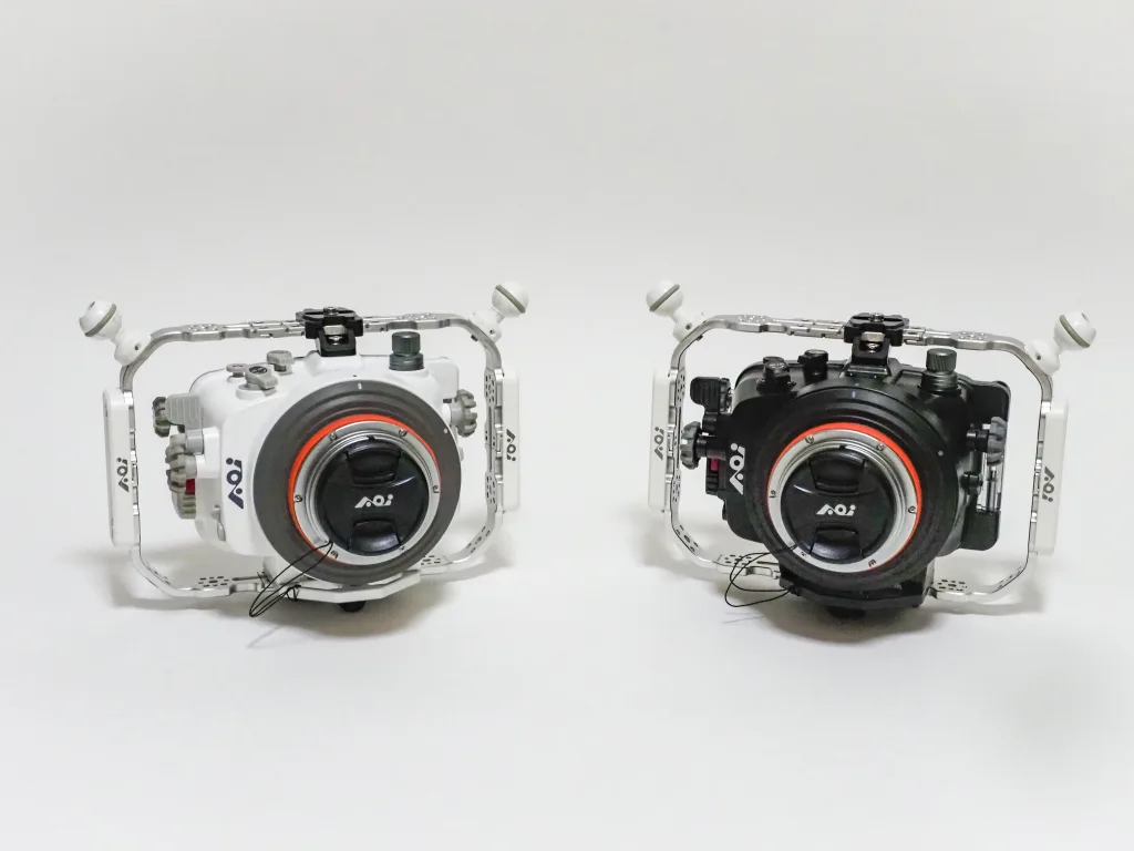 耐水圧は60m、ズーム操作ギアやバキュームリークセンサー、モイスチャーセンサーが標準装備されており、多機能かつ信頼性抜群。さらにポリカーボネート製ボディは軽量化を実現し、なんとハウジングの重量はわずか1302g。カメラと合わせても2kgを下回るという軽快さを誇ります。デザインも「ホワイト」と「ブラック」の2色展開で、洗練されたスタイルを感じさせます。