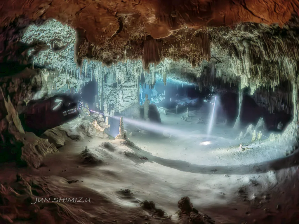 沖縄で水中撮影用中性浮力とセノーテ撮影テクニックの事前講習(別途費用必要)行います。