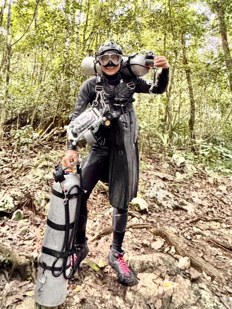 セノーテダイビングを熟知した専属モデルがフォトジェニックに入ります。