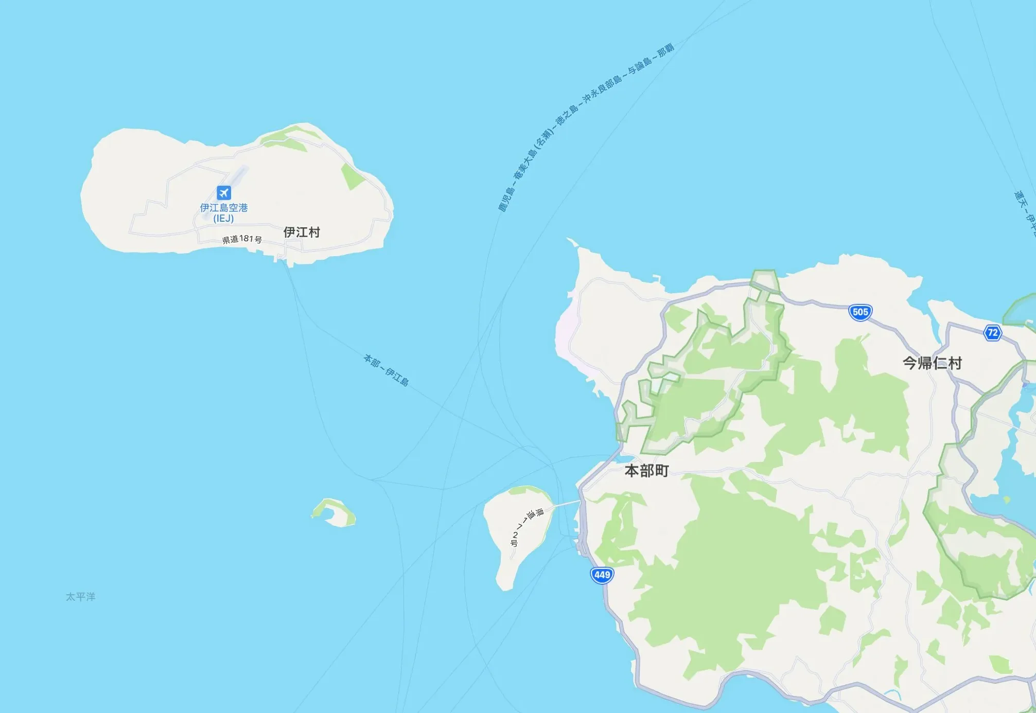 伊江島は、沖縄本島北部の本部半島から北西約9kmの海上に位置する一島一村の農漁村です。本部港からカーフェリーで、約30分で訪れることができます。島は、東西8.4km、南北3km、周囲22.4kmの大きさで、北海岸は約60mの断崖絶壁が連なり、南海岸はほとんどが砂浜です。海抜172mの古生代チャートの城山(伊江島タッチュー)がそびえ立ち、島のシンボルとなっています。